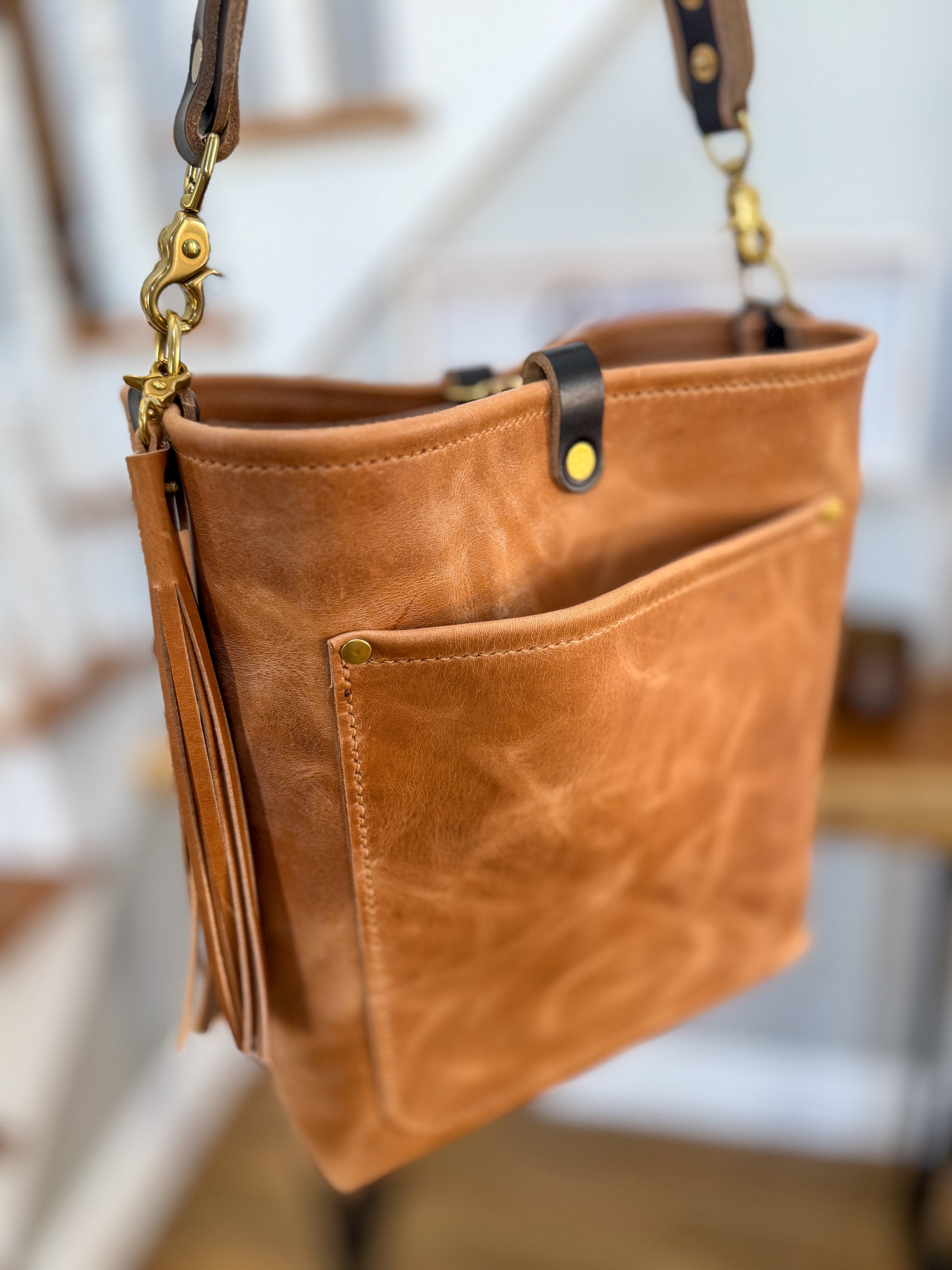 "Hi, I bought one of your first Bennett bags. I'm still using it and love it so much. Very comfortable to carry even in warmer weather. I happen to love the clip closure just for a little extra security. The bag is wearing beautifully. I'm so happy I was able to get it. It's made so well I don't think I'll ever need a new one!! Thanks again so much for my bag." -Jill